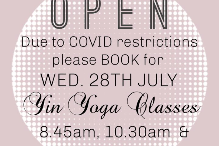 We are open, but please book for Yoga Classes as limited space.