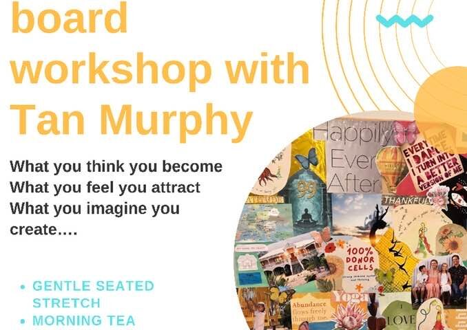 Be inspired to consciously create your hearts desire and future in this vision board workshop facilitated by Tania Soldo-Murphy. We are taking bookings now for the session on Sunday, August 29th 9.30 – 12pm. Date: 29 August, 2021 Time: 9.30am – 12noon Cost: $45 per person All materials supplied. Please bring a photo of you o...