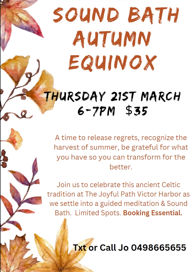 Join us to celebrate this ancient Celtic tradition at The Joyfu Path Victor Harbor as we settle into a guided Meditation & Sound Bath.