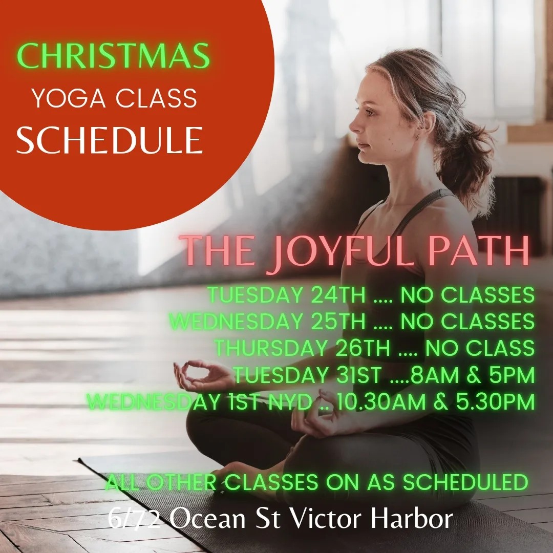 We are preparing for a very Joyful Christmas and updating you with our class schedule over the Christmas week.