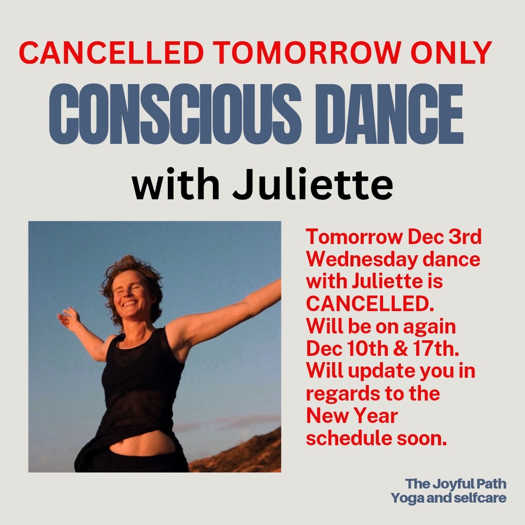 Wednesday 5.30pm dance session with Juliette is cancelled.
