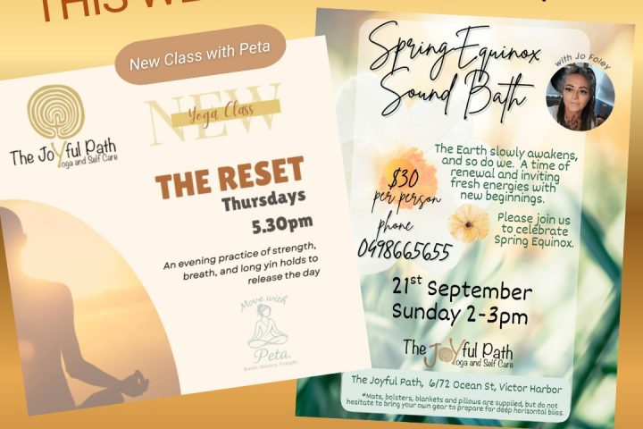 SPRING EQUINOX SOUND BATH with Jo Foley. Sunday 21st September from 2-3pm. The Earth slowly awakens, and so do we. A time of renewal and inviting in fresh energies with new beginnings. Please join us to celebrate Spring Equinox. $30 per person … bookings ph Jo on 0498 665 655. The Joyful Path, 6/72 Ocean...